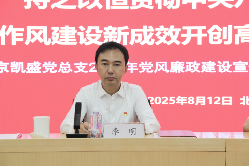 為深入學(xué)習(xí)貫徹習(xí)近平新時(shí)代中國特色社會(huì)主義思想,壓實(shí)管黨治黨政治責(zé)任,推進(jìn)全面從嚴(yán)治黨走深走實(shí),進(jìn)一步加強(qiáng)公司黨風(fēng)廉政建設(shè),結(jié)合正在開展的深入貫徹中央八項(xiàng)規(guī)定精神學(xué)習(xí)教育,8月12日下午,北京凱盛黨總支以“持之以恒貫徹中央八項(xiàng)規(guī)定精神 以作風(fēng)建設(shè)新成效開創(chuàng)高質(zhì)量發(fā)展新局面”為主題,開展2025年黨風(fēng)廉政建設(shè)宣傳教育主題活動(dòng),并召開深入貫徹中央八項(xiàng)規(guī)定精神學(xué)習(xí)教育警示教育大會(huì)。公司黨總支書記、董事李明出席活動(dòng)并講話,黨總支副書記、總經(jīng)理謝吉優(yōu)主持會(huì)議并開展警示教育。