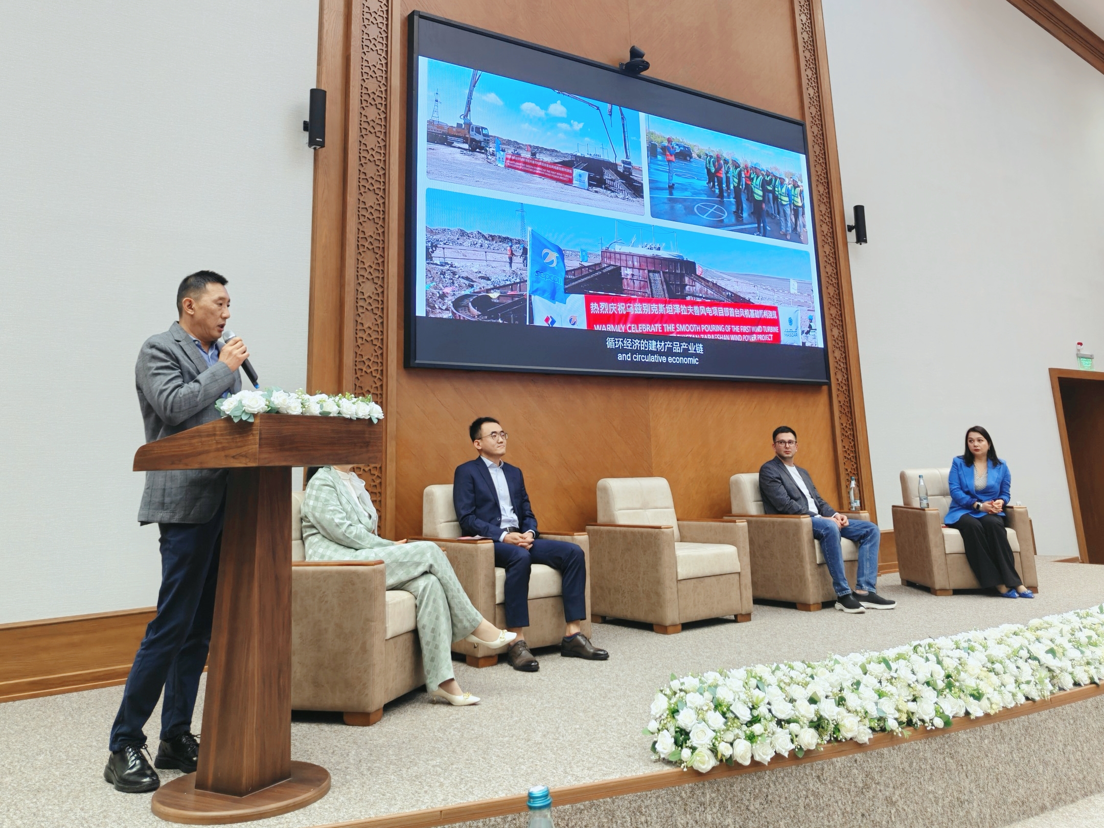 活動現(xiàn)場,北京凱盛烏茲別克斯坦綠色建材有限公司副經(jīng)理劉敬民代表公司講話,詳細介紹了北京凱盛深耕烏茲別克斯坦市場的發(fā)展歷程與人才需求。他指出,北京凱盛在中國建材集團“海外再造”戰(zhàn)略與中材國際“1236”戰(zhàn)略的指引下,持續(xù)擴大在烏水泥工程EPC+市場份額,同步開展化學(xué)建材、商混供應(yīng)等多種屬地化建材產(chǎn)品的生產(chǎn)經(jīng)營。他強調(diào),隨著北京凱盛在烏業(yè)務(wù)的蓬勃發(fā)展,公司亟需更多熟悉中烏文化、精通建材領(lǐng)域的優(yōu)秀人才加入,共同推動當(dāng)?shù)鼐G色建材產(chǎn)業(yè)升級。