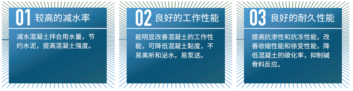 具有廣泛的適應性、極高的減水率、較好的保坍